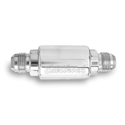 Benzinfilter, Aluminium poliert, Mit Edelbrock-Schriftzug,